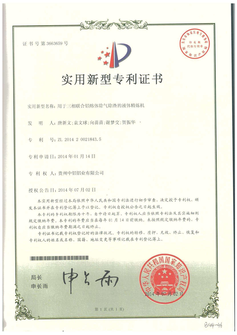 實用新型專利證書